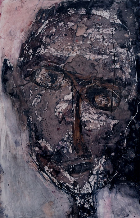 o.T. (Serie: Im Pflegeheim) · 2014 · Mixed Media auf Holz · 54 cm x 35 cm