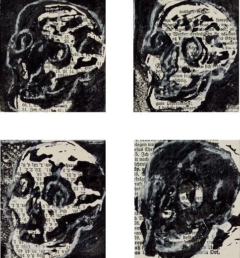 O.T. · 2005/06 · Linolschnitt-Frottagen (Auflage 7) auf Bibelseiten · 7 cm x 6,5 cm |